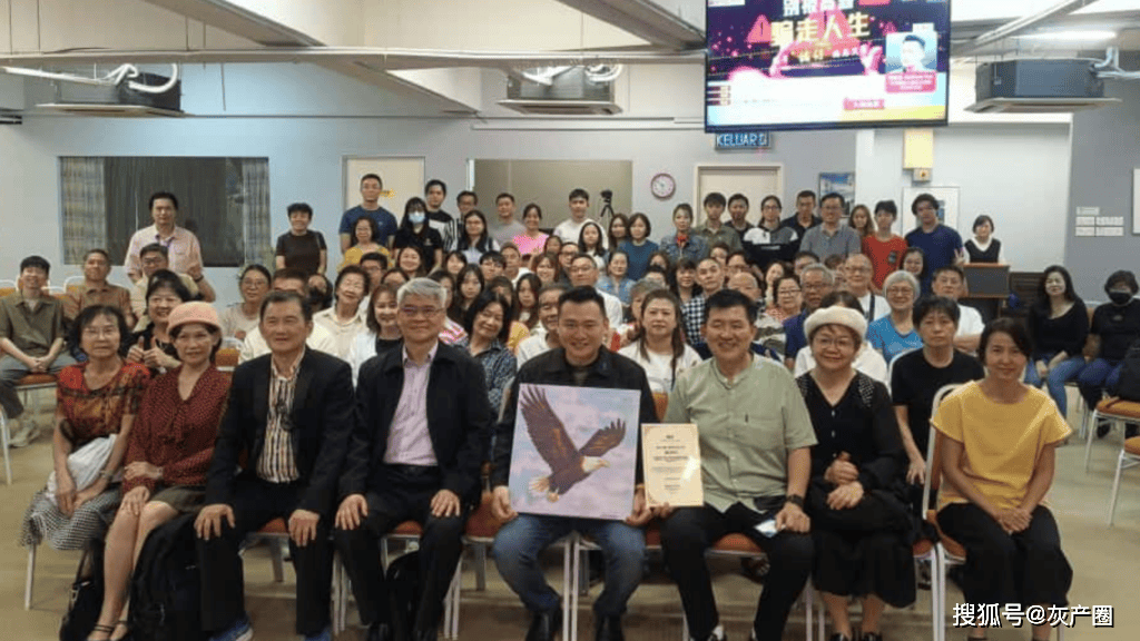 “别被高薪骗走人生——揭开‘猪仔’骗局黑幕”讲座圆满结束后,现场约80名出席者与主讲人胡杰良合影留念。(图:亚视新闻)