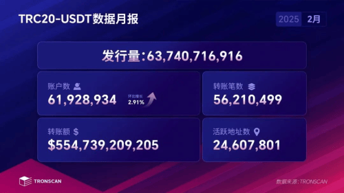 波场TRON完全有理由这么自信,用户量、交易量、技术更新这些硬指标,都是他们底气的来源。截至2025年2月19日,波场TRON的账户总数已经突破了2.9亿。