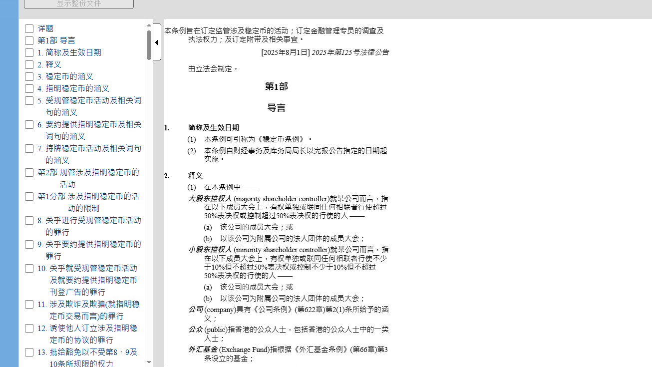 香港《稳定币条例》于2025年8月1日生效,是全球首个法币稳定币专项监管框架,核心目标是规范行业、防范风险、保护投资者,而非打压行业。